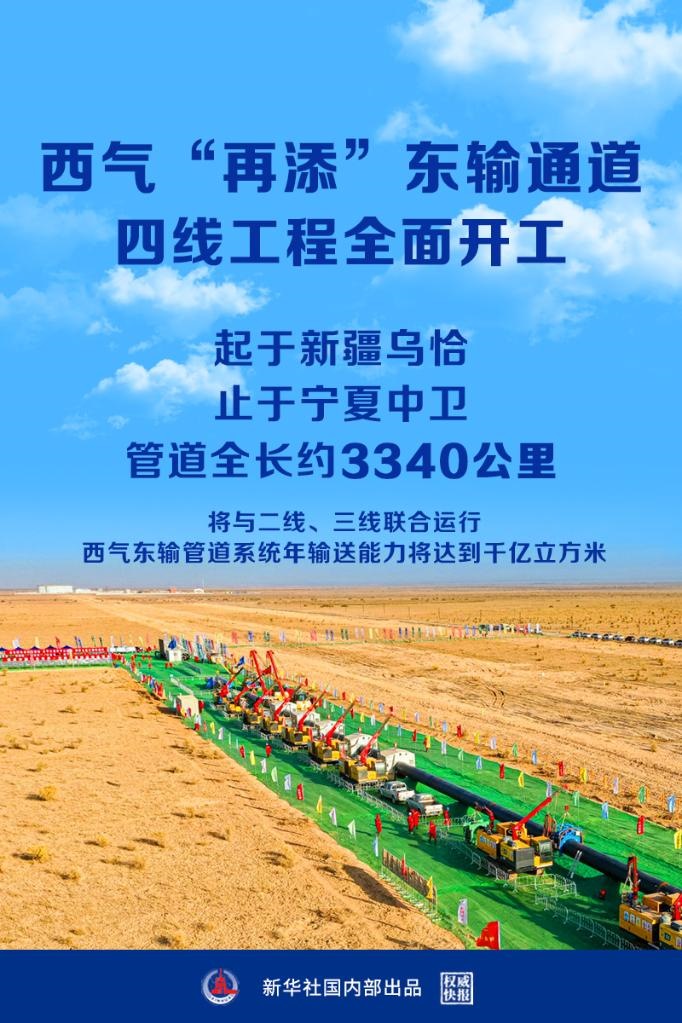 國家管網(wǎng)集團(tuán)西氣東輸四線工程28日正式開工,工程起于新疆烏恰縣,止于寧夏中衛(wèi)市,管道全長約3340公里。
