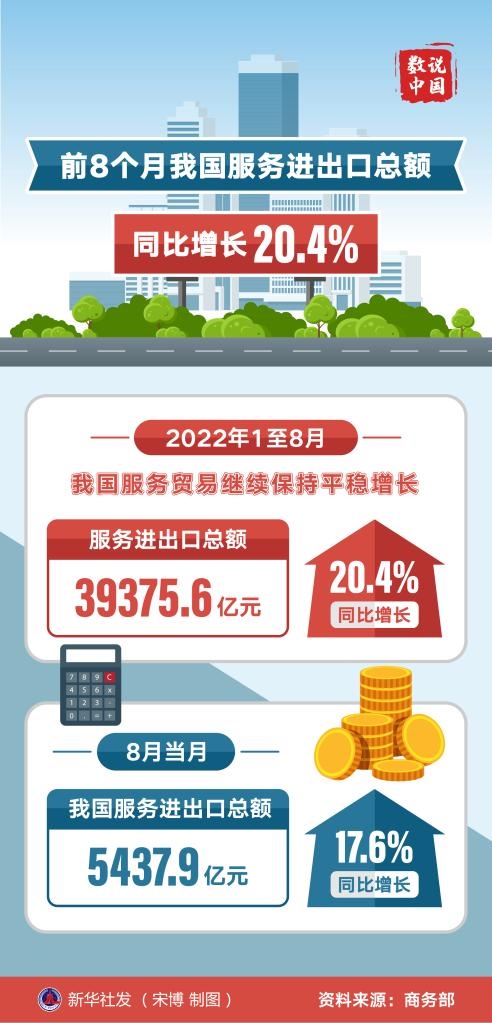 旅行服務(wù)進出口保持增長。1至8月,我國旅行服務(wù)進出口5426.6億元,同比增長7.1%。剔除旅行服務(wù),1至8月我國服務(wù)進出口同比增長22.8%;與2019年同期相比,服務(wù)進出口增長51.9%。