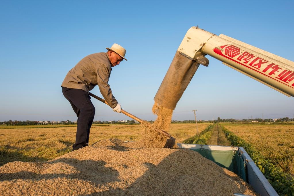 新華社合肥10月18日電(記者趙金正 姜?jiǎng)偅┙鹎锸?,稻田金黃,地處長(zhǎng)江下游的安徽省蕪湖市迎來(lái)秋收。記者近日在蕪湖市多地走訪看到,田間地頭呈現(xiàn)出一幕幕收割水稻、運(yùn)送糧食的繁忙場(chǎng)景。與往年不同的是,今年這里投身于智慧農(nóng)業(yè)實(shí)踐的種糧人多了起來(lái)。