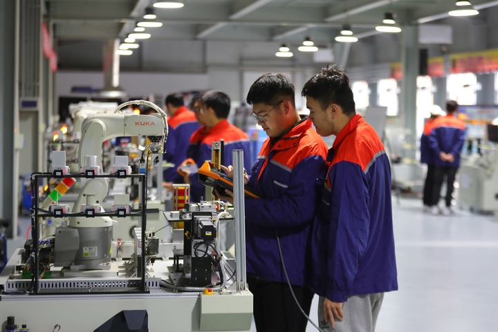 圖為11月2日,在沈陽工學(xué)院工業(yè)機器人實訓(xùn)中心,機器人工程專業(yè)學(xué)生進行工業(yè)機器人基礎(chǔ)實踐應(yīng)用操作。近年來,沈陽工學(xué)院全力建設(shè)工業(yè)機器人實訓(xùn)中心,將車間搬進校園。針對企業(yè)需求,學(xué)校開展機械加工等實操課程,有力提升學(xué)生就業(yè)水平。新華社記者 楊青 攝