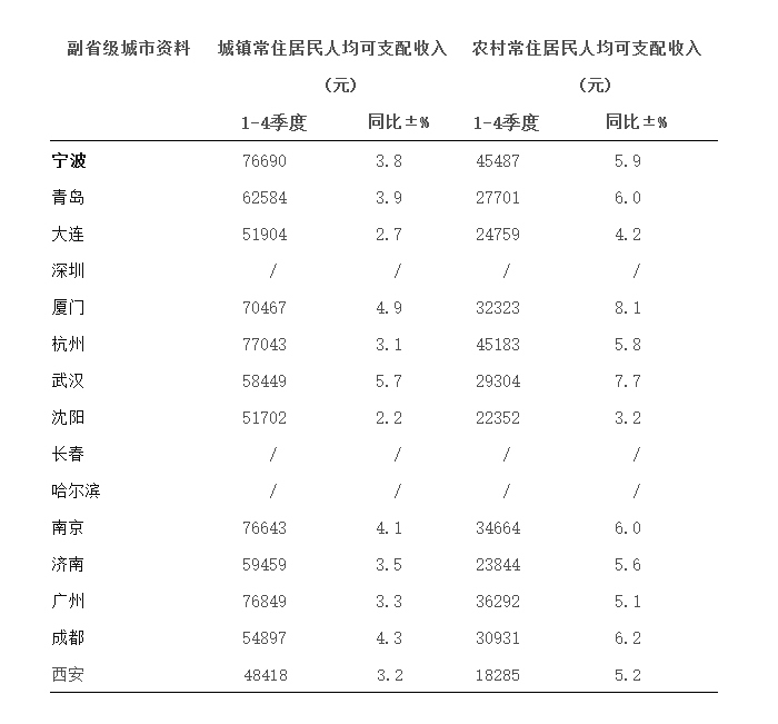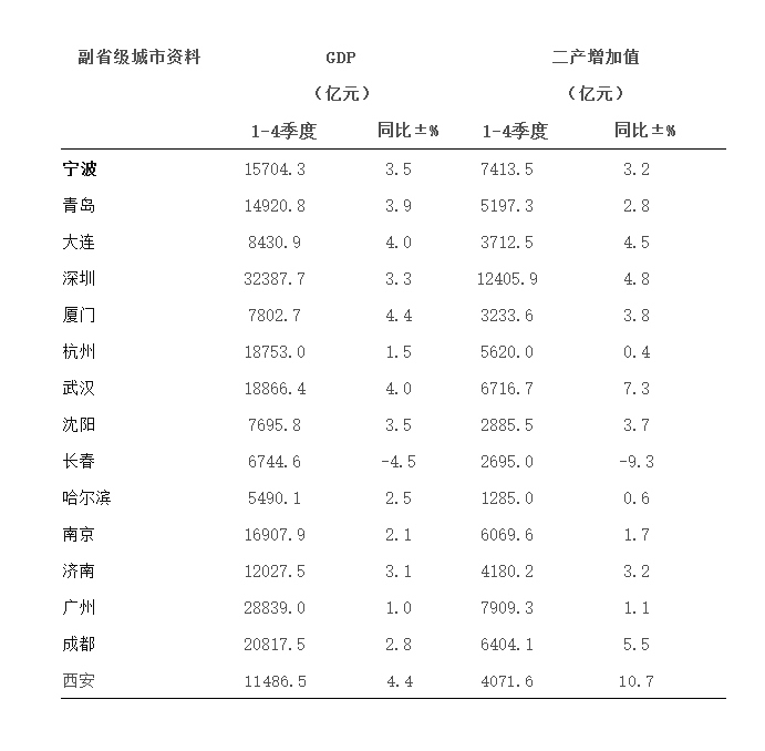 15座副省級城市中,經(jīng)濟增速“破4”的有西安(4.4%)、廈門(4.4%)、武漢(4.0%)和大連(4.0%),長春增速告負,為-4.5%。