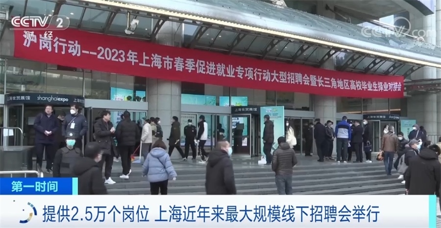 2月25日,“2023年上海市春季促進(jìn)就業(yè)專項(xiàng)行動(dòng)大型招聘會(huì)暨長三角地區(qū)高校畢業(yè)生擇業(yè)對(duì)接會(huì)”舉行。這次招聘會(huì)是2020年以來上海舉辦的最大規(guī)模的線下招聘會(huì),1200余家招聘單位提供招聘崗位超過2.5萬個(gè)。