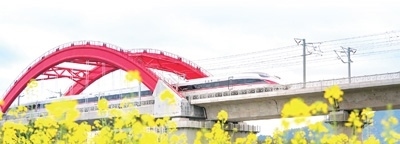 “復興號”高鐵列車在贛深高鐵龍南特大橋疾馳而過。朱海鵬攝