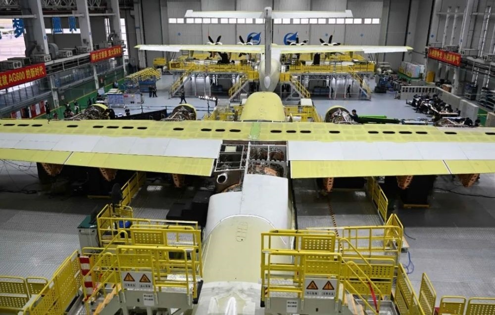 ▲ 在廣東珠海的中航通飛華南飛機(jī)工業(yè)有限公司總裝線(xiàn)上,AG600M 正在總裝(2022年11月7日攝)鄧華攝