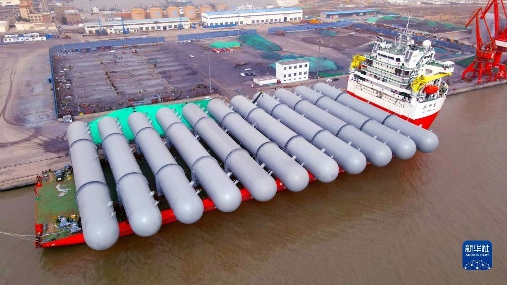 當(dāng)日,由位于山東省榮成市的一家重工企業(yè)制造的超大型石油液化氣儲(chǔ)罐啟運(yùn)安哥拉。這些大型“巨無霸”石油液化氣儲(chǔ)罐每臺(tái)直徑8米、長(zhǎng)80米、重約480噸。據(jù)了解,2022年以來,山東省榮成市從石島港向“一帶一路”國(guó)家出口大型裝備160多臺(tái)(套)。新華社發(fā)(楊志禮攝)