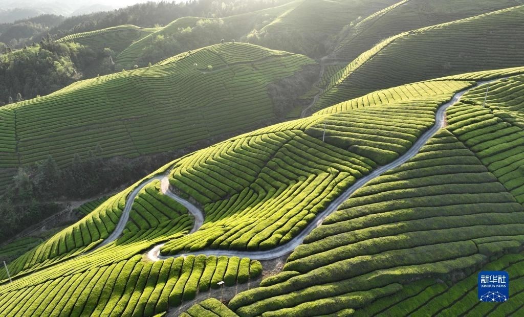 木耳山茶園位于湖北省恩施土家族苗族自治州鶴峰縣走馬鎮(zhèn),面積上萬畝。眼下正是采茶時,木耳山茶園綠意盎然,美如畫卷。   新華社發(fā)(楊順丕攝)