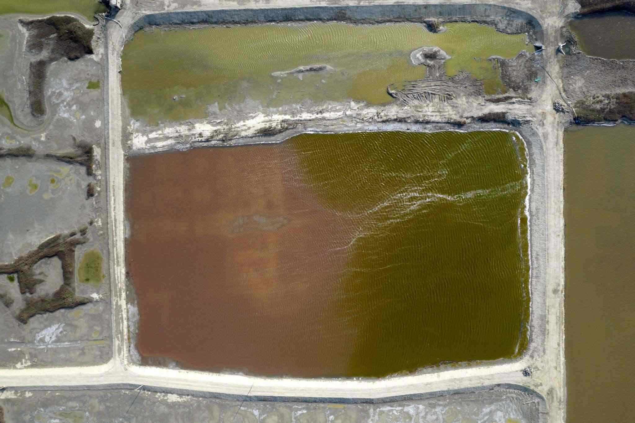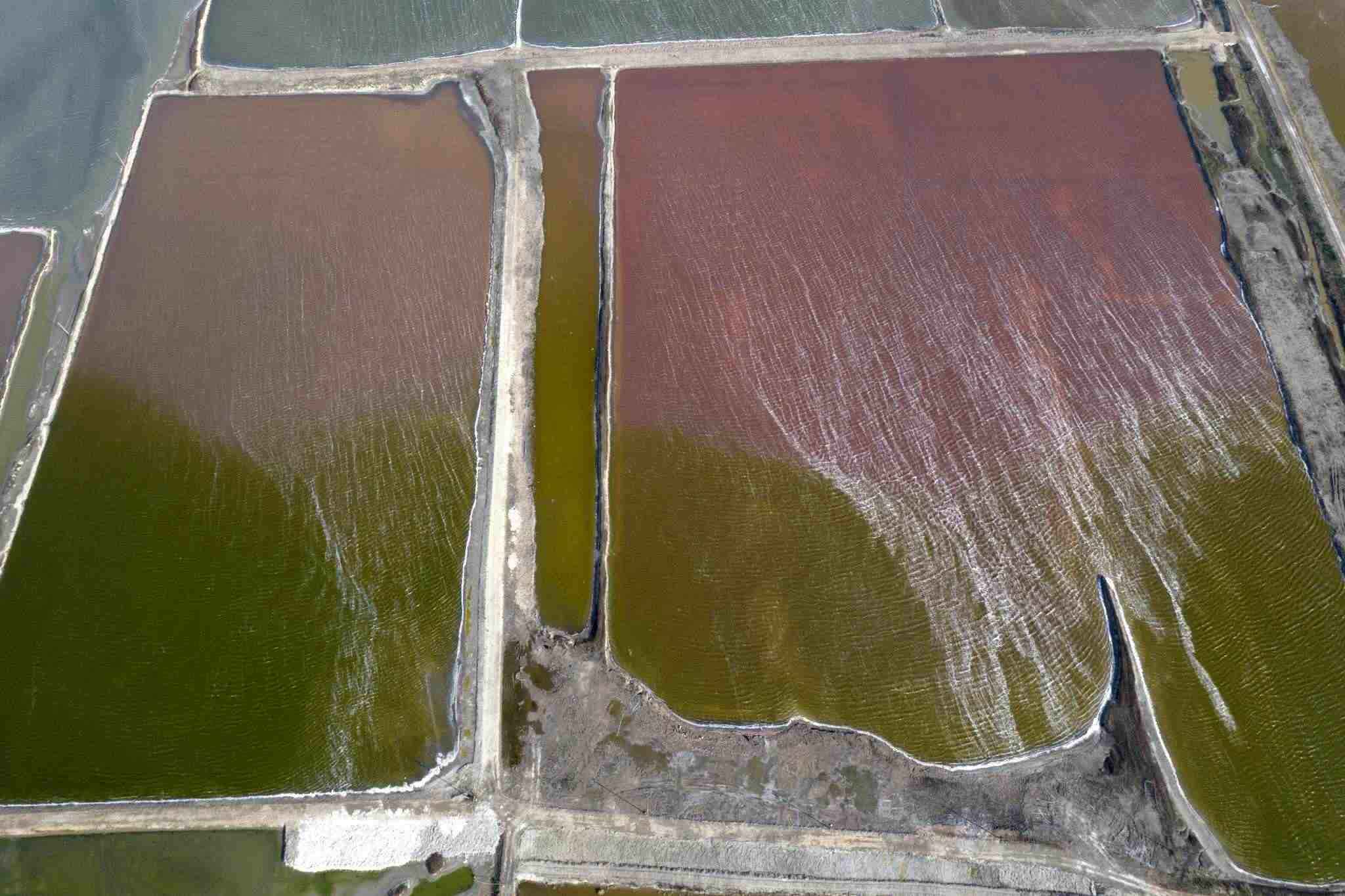 山西運城:七彩鹽湖現風吹波浪景觀
