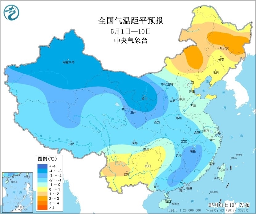 未來10天,全國大部分地區(qū)平均氣溫較常年同期偏低1~2℃,其中新疆、甘肅、內(nèi)蒙古西部等地的部分地區(qū)偏低3℃以上。冷空氣主要影響時段為3-6日,西北地區(qū)東部、華北北部等地部分時段將有沙塵或揚(yáng)沙天氣。