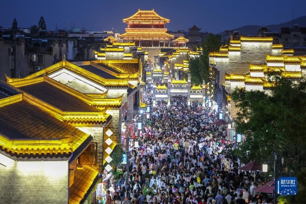 4月30日,人們在四川省涼山彝族自治州西昌市建昌古城游覽。