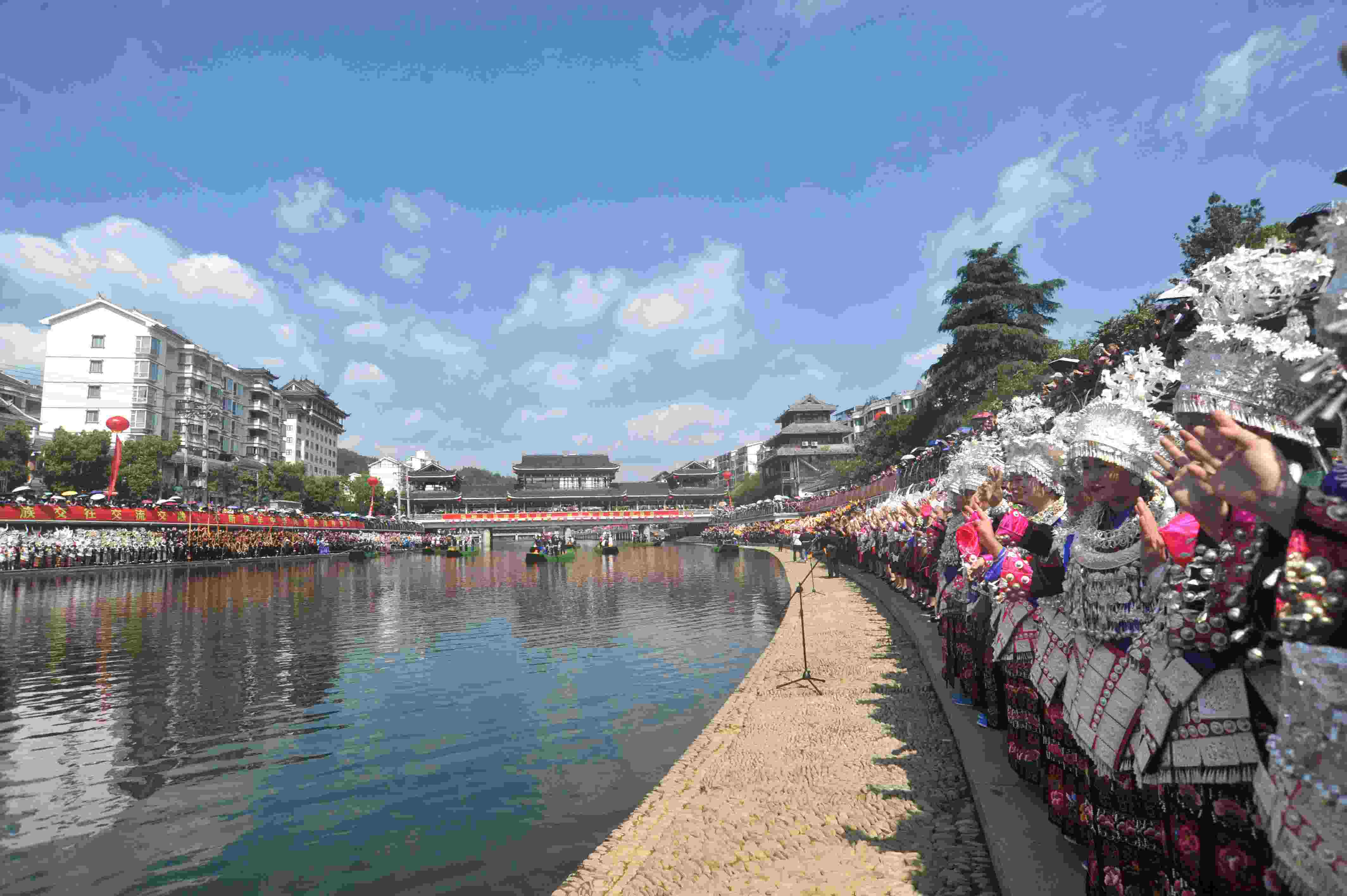 貴州臺江:翁你河畔上演萬人苗歌對唱