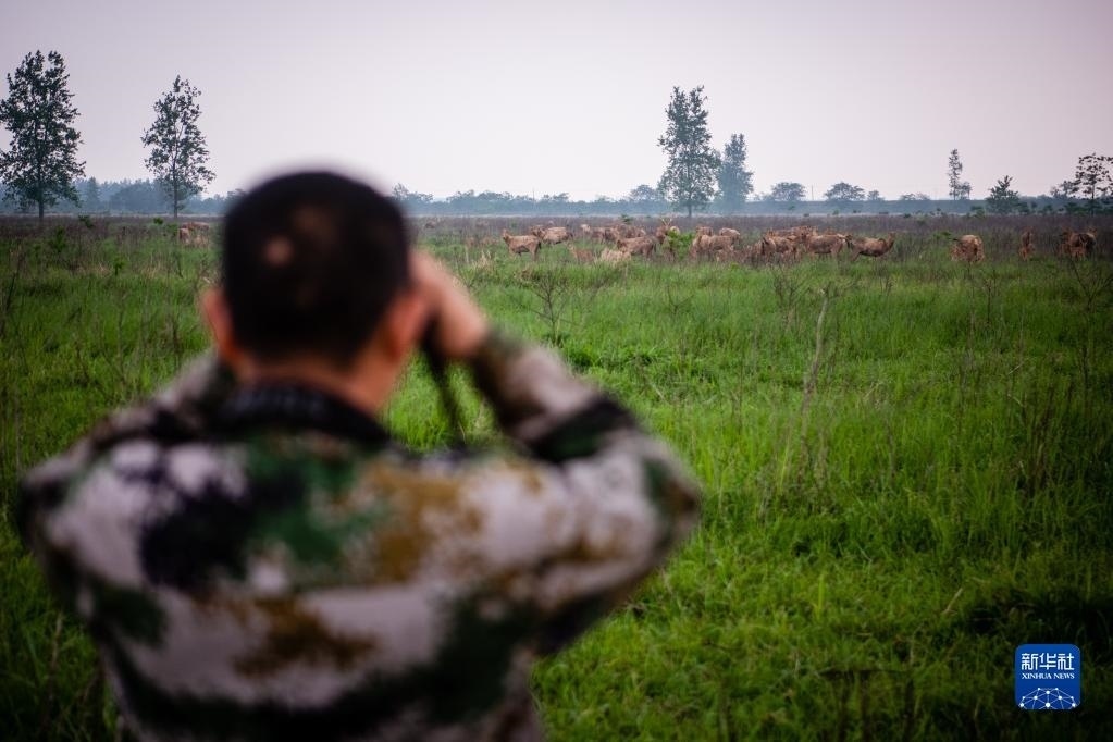 巡護隊伍通過望遠鏡、長焦相機、無人機、視頻監(jiān)測塔、紅外相機等工具,對1500余頭麋鹿進行日常監(jiān)測、年節(jié)律周期監(jiān)測、種群動態(tài)監(jiān)測,并對保護區(qū)內(nèi)的氣象數(shù)據(jù)、水文數(shù)據(jù)、地表水質(zhì)數(shù)據(jù)、植被類型以及其他野生動物情況進行監(jiān)測記錄。他們還需要承擔卡口值守、應(yīng)急管理等工作。在他們的悉心照料下,這里成為適宜麋鹿種群棲息的家園。