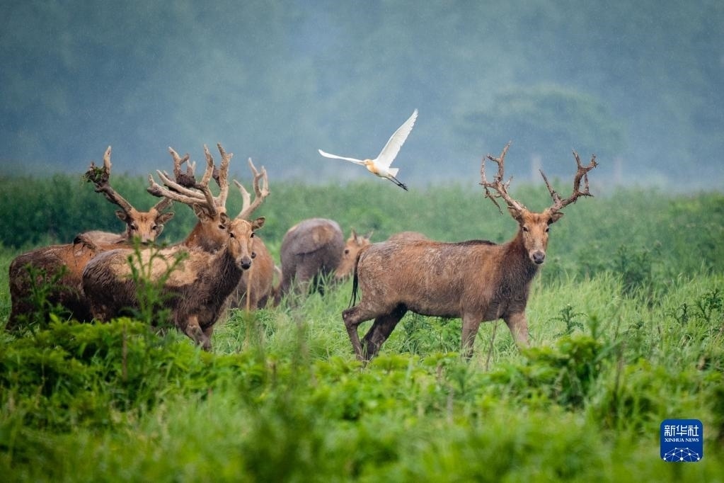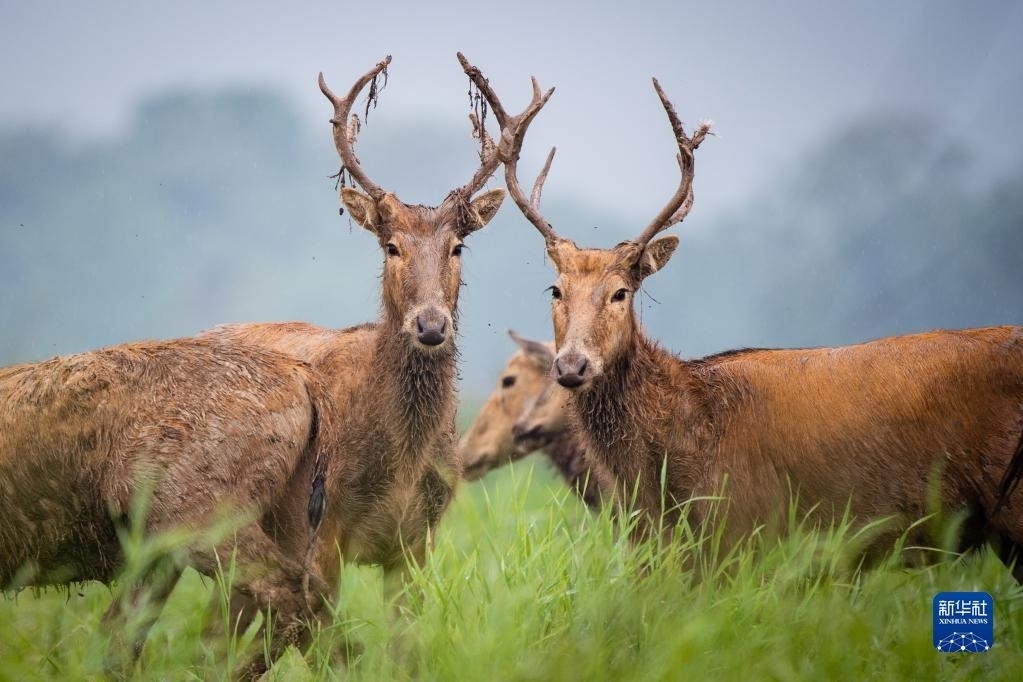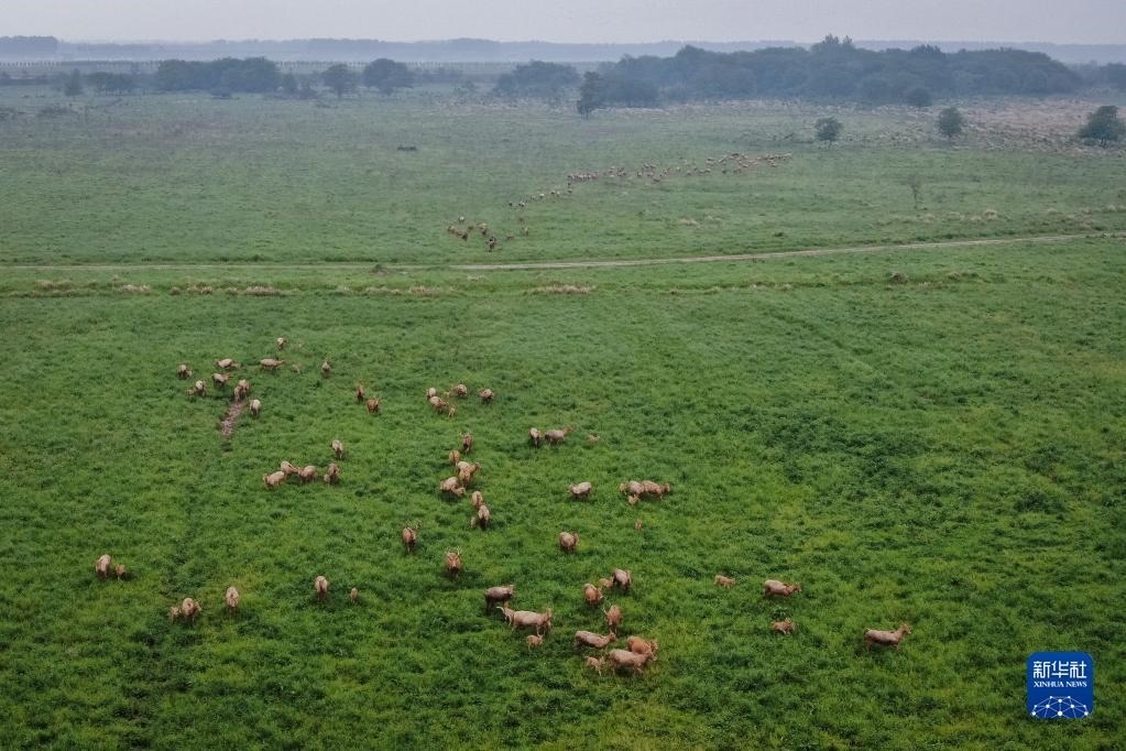 石首麋鹿國家級自然保護區(qū)成立于1991年,這里牧草豐富,濕地生態(tài)系統(tǒng)完整。30多年間,麋鹿種群繁衍擴散,逐漸形成了保護區(qū)、東升三合垸、小河楊波坦及湖南洞庭湖4個小種群,從最初引進的64頭發(fā)展到2500余頭,全部實現(xiàn)自然繁衍,恢復(fù)了野生習性。