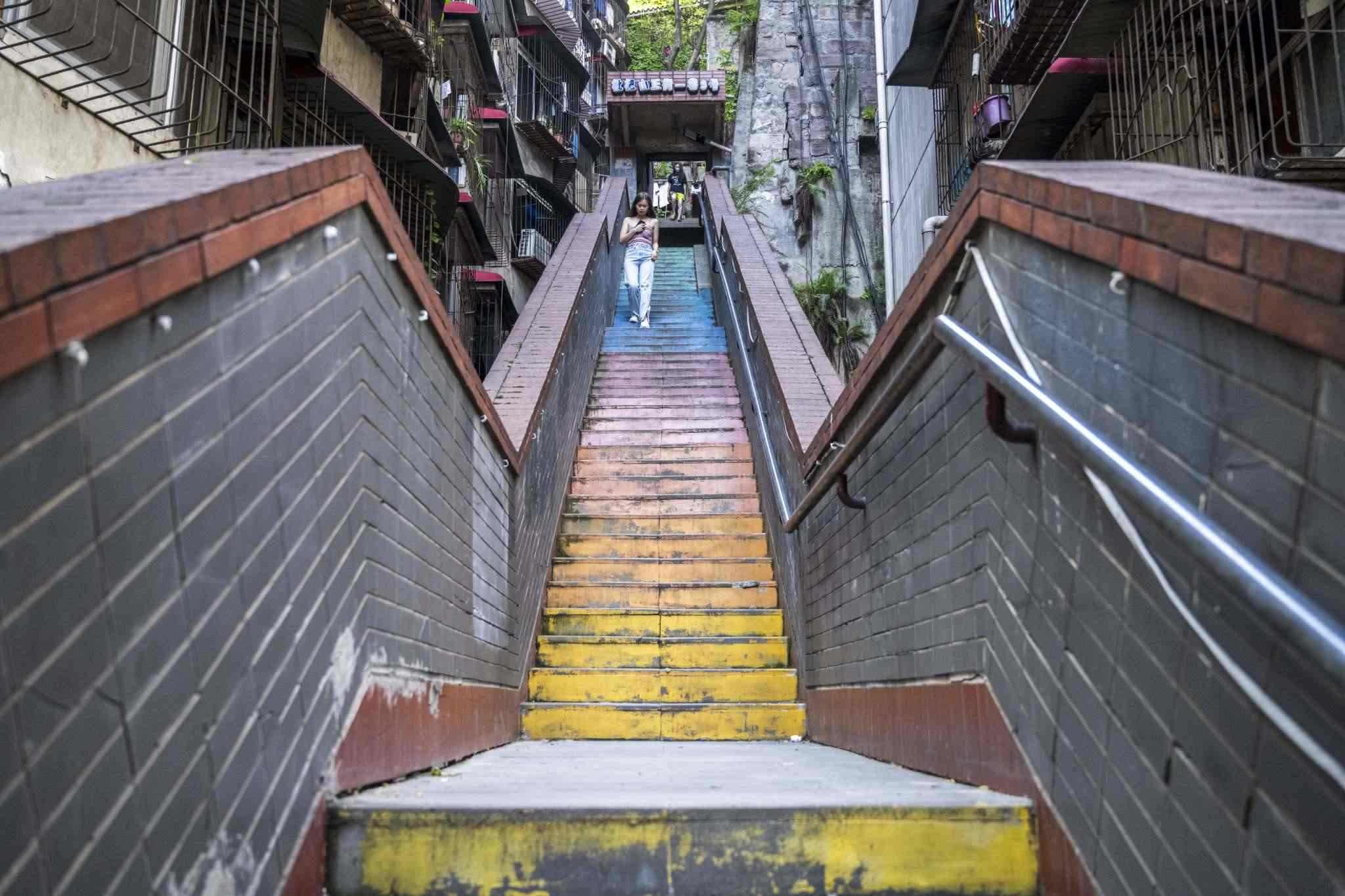 重慶:居民樓現20米高“彩虹樓梯”