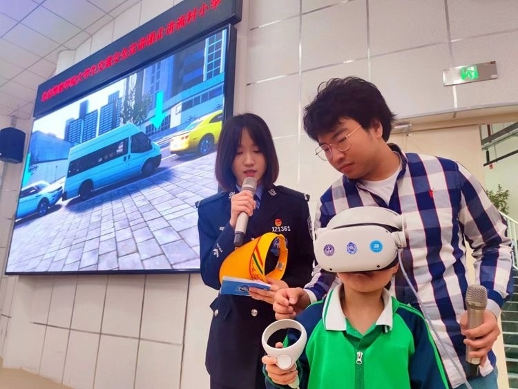 今天(5月4日)是五四青年節(jié),北京警察學(xué)院大學(xué)生交通安全宣講團(tuán)來(lái)到昌平流村小學(xué),開(kāi)展“大學(xué)生牽手小學(xué)生,知危險(xiǎn)會(huì)避險(xiǎn)”的主題宣傳活動(dòng),通過(guò)文藝表演、VR實(shí)景體驗(yàn)、情景劇以及多種交通安全體驗(yàn)類(lèi)的游戲講解交通安全知識(shí),以這種特殊的方式慶祝自己的節(jié)日。