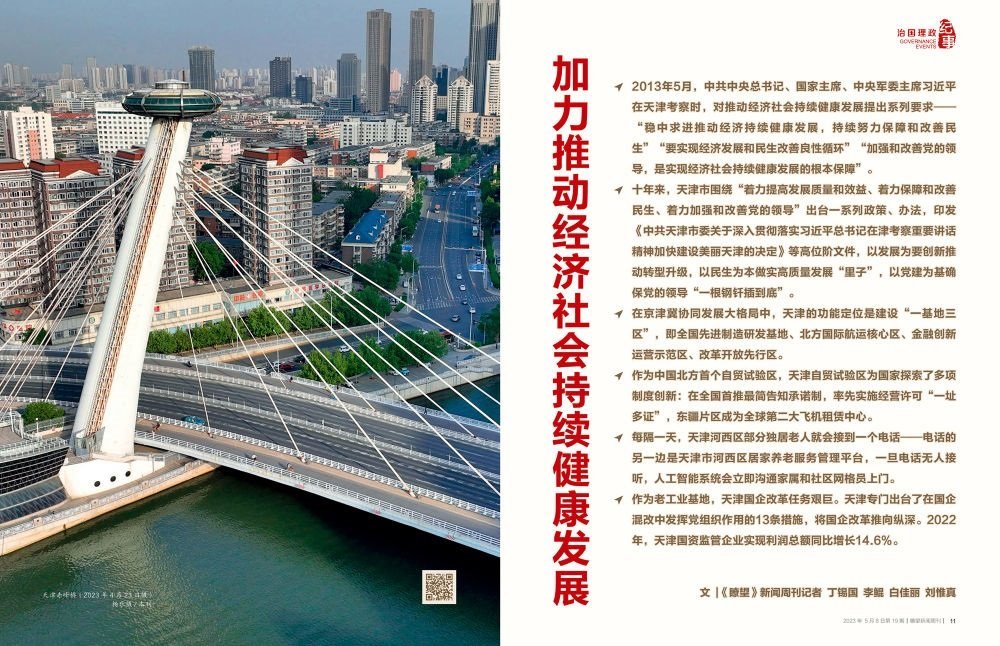 ◇十年來,天津市圍繞“著力提高發(fā)展質(zhì)量和效益、著力保障和改善民生、著力加強和改善黨的領(lǐng)導(dǎo)”出臺一系列政策、辦法,印發(fā)《中共天津市委關(guān)于深入貫徹落實習(xí)近平總書記在津考察重要講話精神加快建設(shè)美麗天津的決定》等高位階文件,以發(fā)展為要創(chuàng)新推動轉(zhuǎn)型升級,以民生為本做實高質(zhì)量發(fā)展“里子”,以黨建為基確保黨的領(lǐng)導(dǎo)“一根鋼釬插到底”。