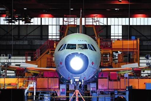 空客天津總裝線的首架空客 A321 飛機上線開始總裝(2022 年 11 月 9 日攝)趙子碩攝 / 本刊