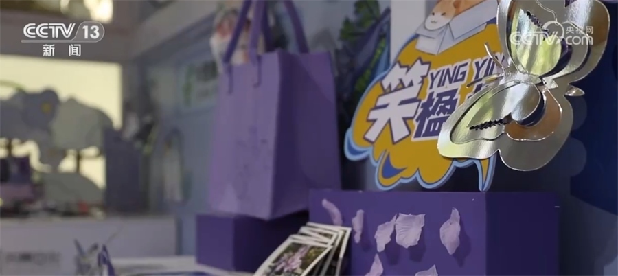總臺記者 郭琳潔:我手上這個明信片就是在身后的藍花楹主題郵局購買的,寫好之后就可以在這里郵遞出去了。在賞花之余,游客們可以在創(chuàng)意景觀打卡拍照,在文創(chuàng)市集逛一逛,寄一張明信片,留下在這里的浪漫時光。