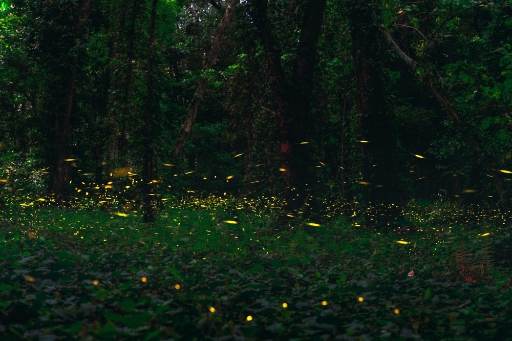 夜幕降臨 廣州華南植物園螢火蟲(chóng)林間飛舞