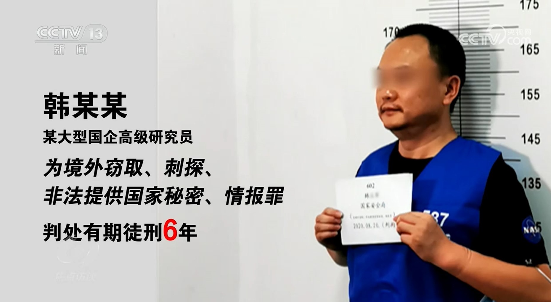 韓某某,我國(guó)某大型國(guó)企高級(jí)研究員,因?yàn)榫惩飧`取、刺探、非法提供國(guó)家秘密、情報(bào)罪,被判處有期徒刑6年。