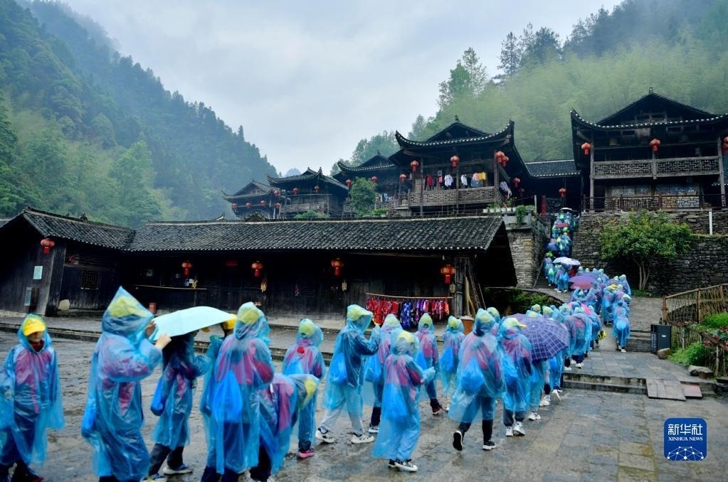 湖北省宣恩縣彭家寨風(fēng)景區(qū)依托保存完好的土家古吊腳樓群落,通過(guò)完善研學(xué)基礎(chǔ)設(shè)施,吸引各地學(xué)校組織學(xué)生來(lái)此開(kāi)展土家民俗文化、土家建筑等研學(xué)活動(dòng)。古寨研學(xué)不僅讓學(xué)子們收獲成長(zhǎng),同時(shí)也豐富了山區(qū)旅游的內(nèi)涵,為帶動(dòng)鄉(xiāng)村振興注入了新動(dòng)能。新華社發(fā)(宋文攝)