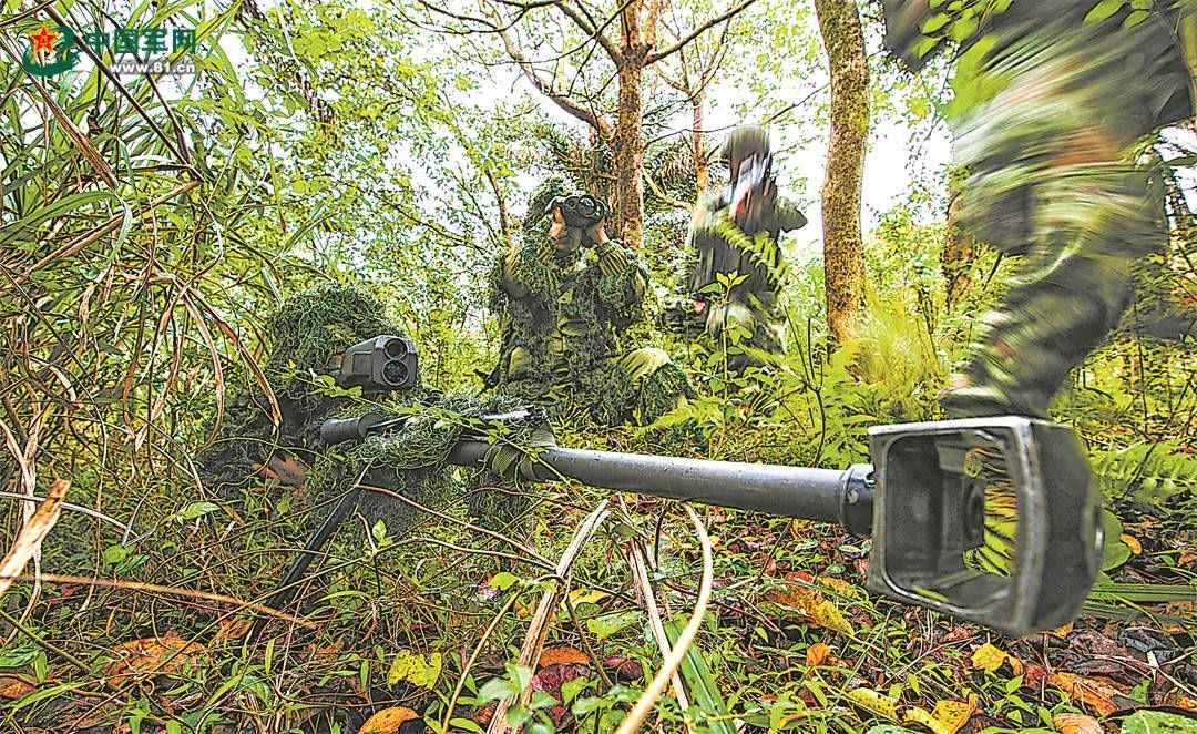 引擎轟鳴,鐵翼飛旋。直升機(jī)到達(dá)預(yù)定空域后,偵察隊員接續(xù)索降,落地后迅速組成戰(zhàn)術(shù)隊形進(jìn)行滲透。叢林深處,狙擊組快速占領(lǐng)狙擊陣位,警戒組持續(xù)監(jiān)視“敵”動態(tài),偵察組前出偵察,并將目標(biāo)信息快速上報指揮所。