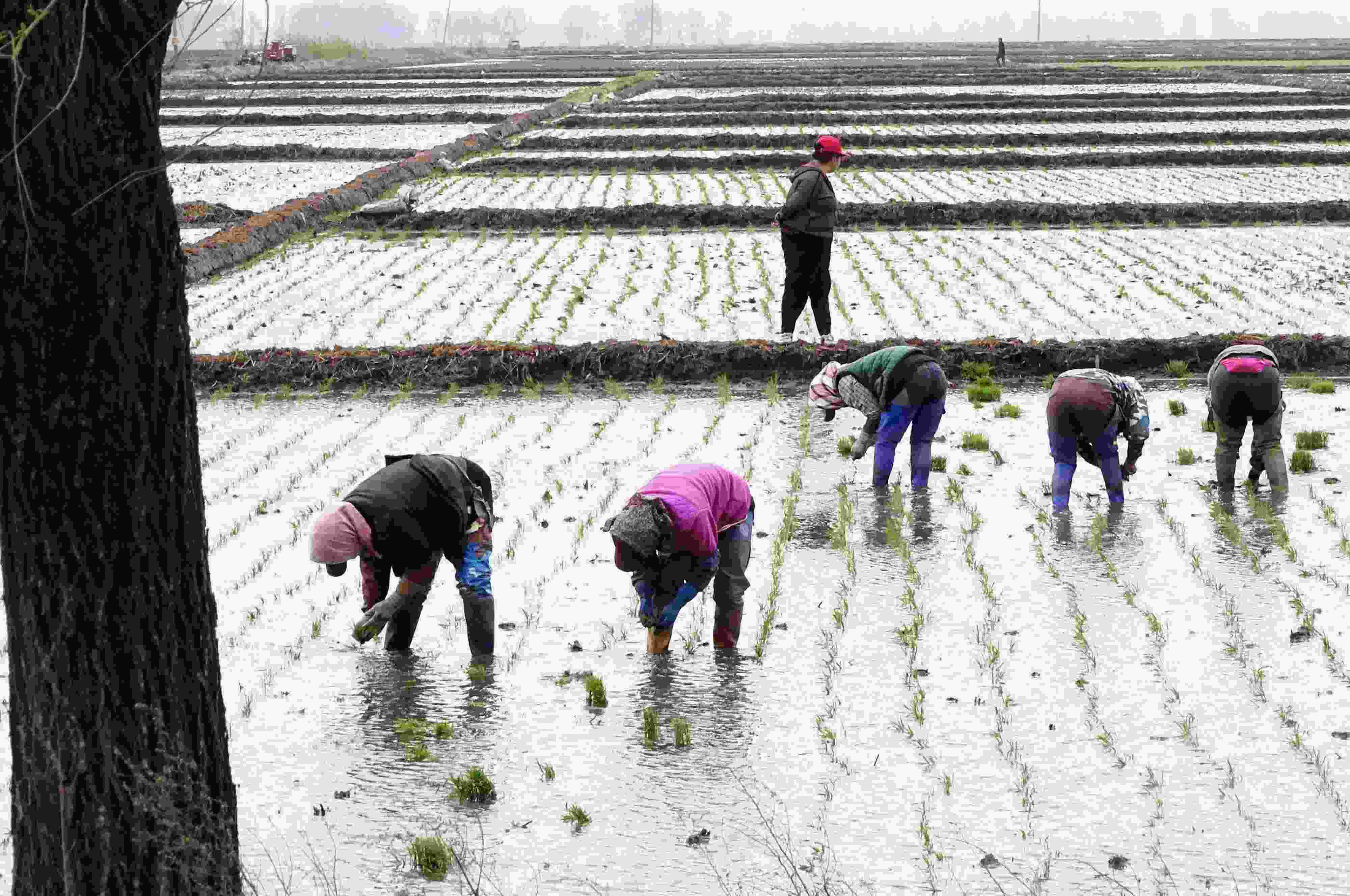 五月中旬,黑龍江省五常市,當?shù)剞r(nóng)戶搶抓農(nóng)時開展夏季插秧大生產(chǎn),田間地頭一派繁忙景象。 (吳胡荼 攝)