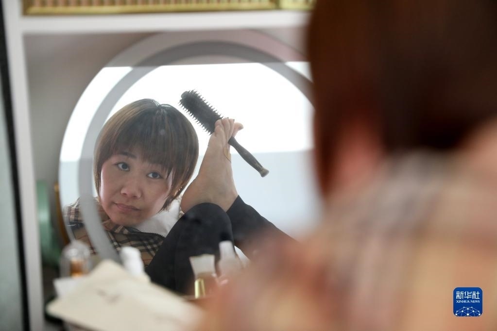 5月11日,韓丹在出門前梳頭。   新華社記者 姚劍鋒 攝