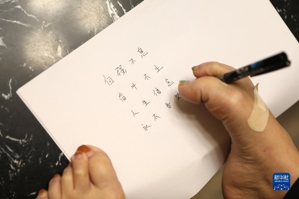 成為一名母親,對于韓丹來說,是一個(gè)異常艱難的過程。沒辦法用手抱住喂奶,韓丹就坐在床上,用腳把孩子擁在懷里。女兒的頭發(fā)漸漸長長,韓丹就學(xué)著用腳幫她扎馬尾辮,盡自己最大的努力照顧孩子。但在韓丹心里,依然有一個(gè)遺憾:不能擁抱自己的孩子。還好兩個(gè)孩子很懂事。遇見同學(xué)的疑問,他們總會自信地說:“我的媽媽很厲害,她的腳什么都能干!”   新華社記者 姚劍鋒 攝