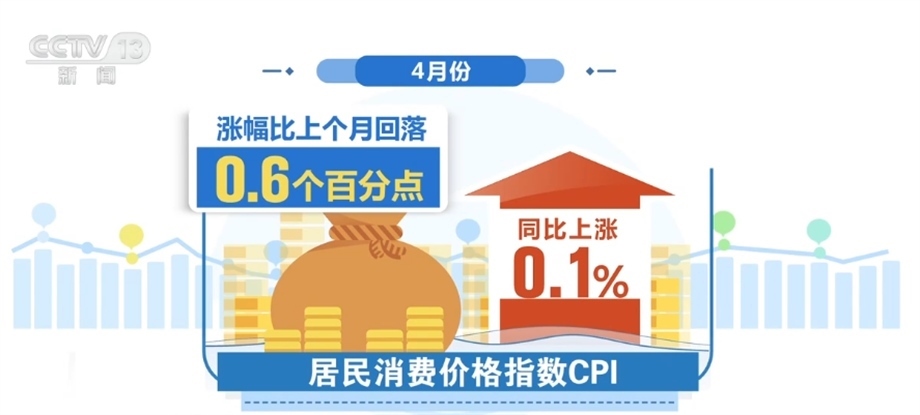 國家統(tǒng)計局新聞發(fā)言人付凌暉介紹,今年以來,居民消費價格指數(shù)也就是CPI同比漲幅總體上是回落的,4月份同比上漲0.1%,漲幅比上個月回落了0.6個百分點,CPI走低主要是一些階段性因素影響。