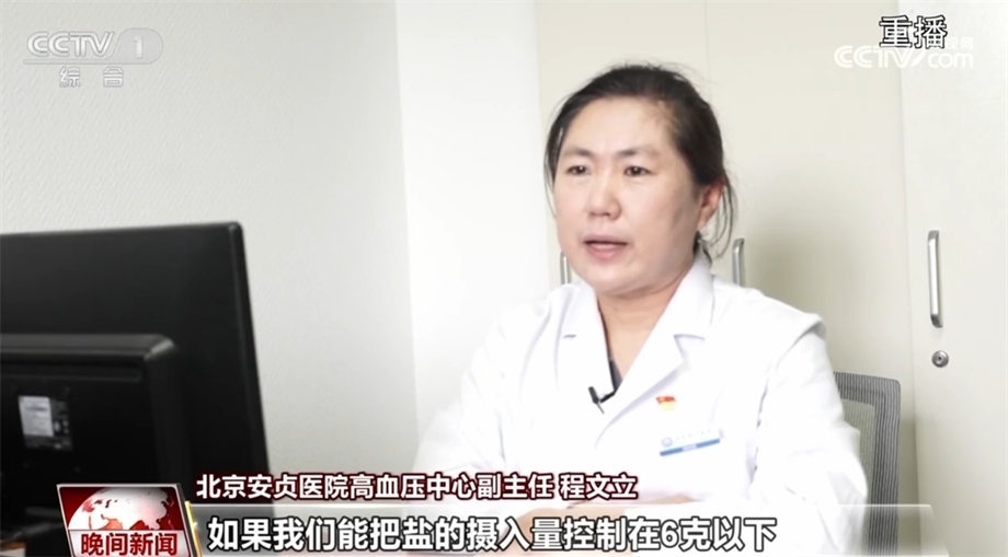 北京安貞醫(yī)院高血壓中心副主任 程文立:如果我們能把鹽的攝入量控制在6克以下,那么血壓能夠降低大概三到六個mmHg這么多,所以說食鹽對血壓影響其實(shí)是很大的。