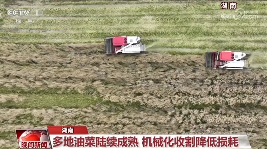 近日,湖南多地的油菜陸續(xù)進(jìn)入采收期。在衡陽(yáng)市衡陽(yáng)縣,種植戶凌超駕駛著新型聯(lián)合收割機(jī)在田間作業(yè)。伴隨著機(jī)器的轟鳴聲,一茬茬油菜被送到機(jī)器中,油菜籽和秸稈被直接分離,打碎的秸稈從機(jī)器尾部噴撒還田。凌超告訴記者,通過全程機(jī)械化作業(yè),不僅縮短了工時(shí),還節(jié)約了成本。
