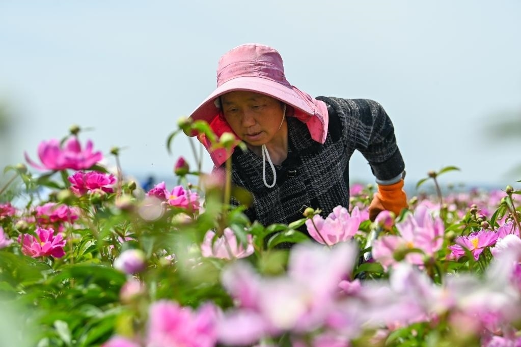 “花經(jīng)濟(jì)”持續(xù)升溫下,越來(lái)越多農(nóng)民走出家門,成為產(chǎn)業(yè)工人。入夏,走進(jìn)伊寧縣天山花海景區(qū),連片芍藥、亞麻花爭(zhēng)相盛開,工人正在田間加緊除草、養(yǎng)護(hù)。