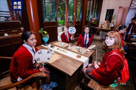 茶,深受世界各國(guó)人民喜愛(ài),已經(jīng)成為中國(guó)與世界人民相知相交的重要媒介。來(lái)自多國(guó)的少年“國(guó)際茶文化小使者”,現(xiàn)場(chǎng)齊聲誦讀茶經(jīng),演唱歌曲《中國(guó)茶》,用歌聲講述“中國(guó)茶”的故事。