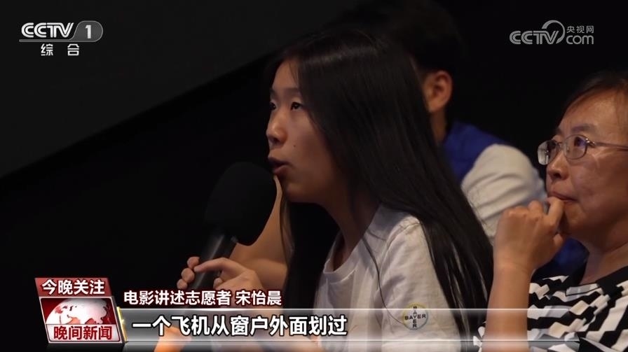 電影講述志愿者 宋怡晨:講述者就是一個(gè)旁白的工作,在臺(tái)詞的空隙、轉(zhuǎn)場(chǎng)的空隙把所有那些在電影院里只能通過眼睛看得到的信息,以聲音的形式來展現(xiàn)給盲人觀眾。你說一個(gè)杯子,誰(shuí)都知道杯子長(zhǎng)什么樣,但你說一個(gè)太空的儀器,沒有人知道它長(zhǎng)什么樣子,他描繪不出來那個(gè)畫面,所以這個(gè)信息在他們這是斷層的。