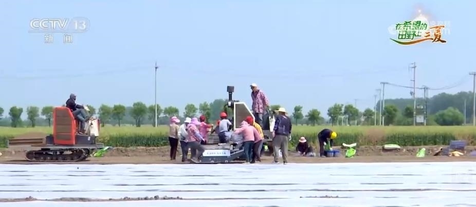 育好的秧苗會(huì)被蓋上薄膜進(jìn)行暗化處理,這些薄膜透氣性好、受熱均勻、出苗率高,在露天農(nóng)田中等待20多天就可以進(jìn)行插秧。為了讓水稻秧苗茁壯成長,農(nóng)民們在前期已經(jīng)完成了平整場地、修繕溝渠、翻耕施肥等一系列準(zhǔn)備工作。