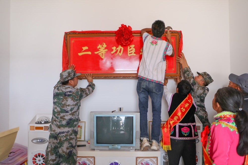 鑼鼓喧天,鞭炮齊鳴。近日,云南省楚雄彝族自治州大姚縣桂花鎮(zhèn)大河村張燈結(jié)彩、熱鬧非凡,武警云南總隊昭通支隊派出送喜報小分隊輾轉(zhuǎn)600余公里來到這里,聯(lián)合當?shù)厝宋洳亢屯艘圮娙耸聞?wù)局,為榮立個人二等功的現(xiàn)役軍人鄒永金的家屬送去喜報、牌匾和慰問金。