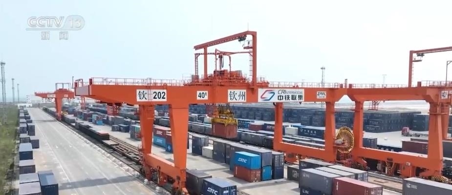 在西部陸海新通道關(guān)鍵節(jié)點(diǎn)的欽州港東站,鐵海聯(lián)運(yùn)貨物上下列車、進(jìn)出港口24小時不停歇,每天最多到發(fā)的鐵海聯(lián)運(yùn)班列有21列。截至目前,西部陸海新通道鐵海聯(lián)運(yùn)班列已輻射我國17省份、60市、115個車站,通達(dá)全球119個國家和地區(qū)的393個港口。