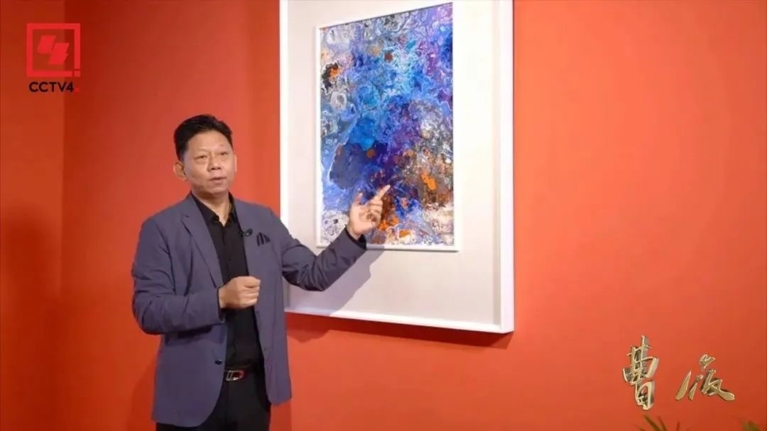 曹俊把中國的繪畫方式和西方的顏色技法相結(jié)合,以俯視地球的視角創(chuàng)作出了一組抽象作品,他把這些作品命名為“宇宙”系列,在這些作品中,他訴說了自己看到新西蘭自然景象時(shí)的心理活動(dòng)。