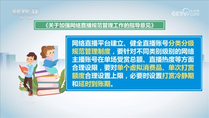 根據(jù)行業(yè)管理的要求,2021年我國《關(guān)于加強(qiáng)網(wǎng)絡(luò)直播規(guī)范管理工作的指導(dǎo)意見》中就提出,網(wǎng)絡(luò)直播平臺建立、健全直播賬號分類分級規(guī)范管理制度,要針對不同類別級別的網(wǎng)絡(luò)主播賬號在單場受賞總額、直播熱度等方面合理設(shè)限,要對單個虛擬消費品、單次打賞額度合理設(shè)置上限,必要時設(shè)置打賞冷靜期和延時到賬期。時隔兩年多的時間,這些要求一些平臺并沒有落實。