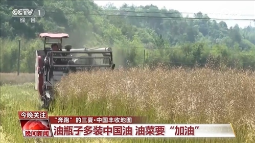 作為國內(nèi)主要食用油源,油菜籽的加工技術(shù)也在提升。鐮刀割菜、摔打脫籽的傳統(tǒng)收割方式,逐漸被智能機(jī)械化替代。一臺收割機(jī)能先后完成脫粒、粉碎油菜果殼和秸稈以及噴撒還田的全流程,還大大降低了菜籽丟損率。傳統(tǒng)人工收割一天只能收一畝,機(jī)械收割一天能收60到70畝,也就是說,一臺收割機(jī)相當(dāng)于至少60個(gè)勞動力。不得不感嘆,農(nóng)業(yè)現(xiàn)代化,真香。今年夏收,油菜面積預(yù)計(jì)達(dá)到1億畝以上,增加1000萬畝左右。為了我們的“油瓶子”多裝中國油,中國油菜要“加油”。