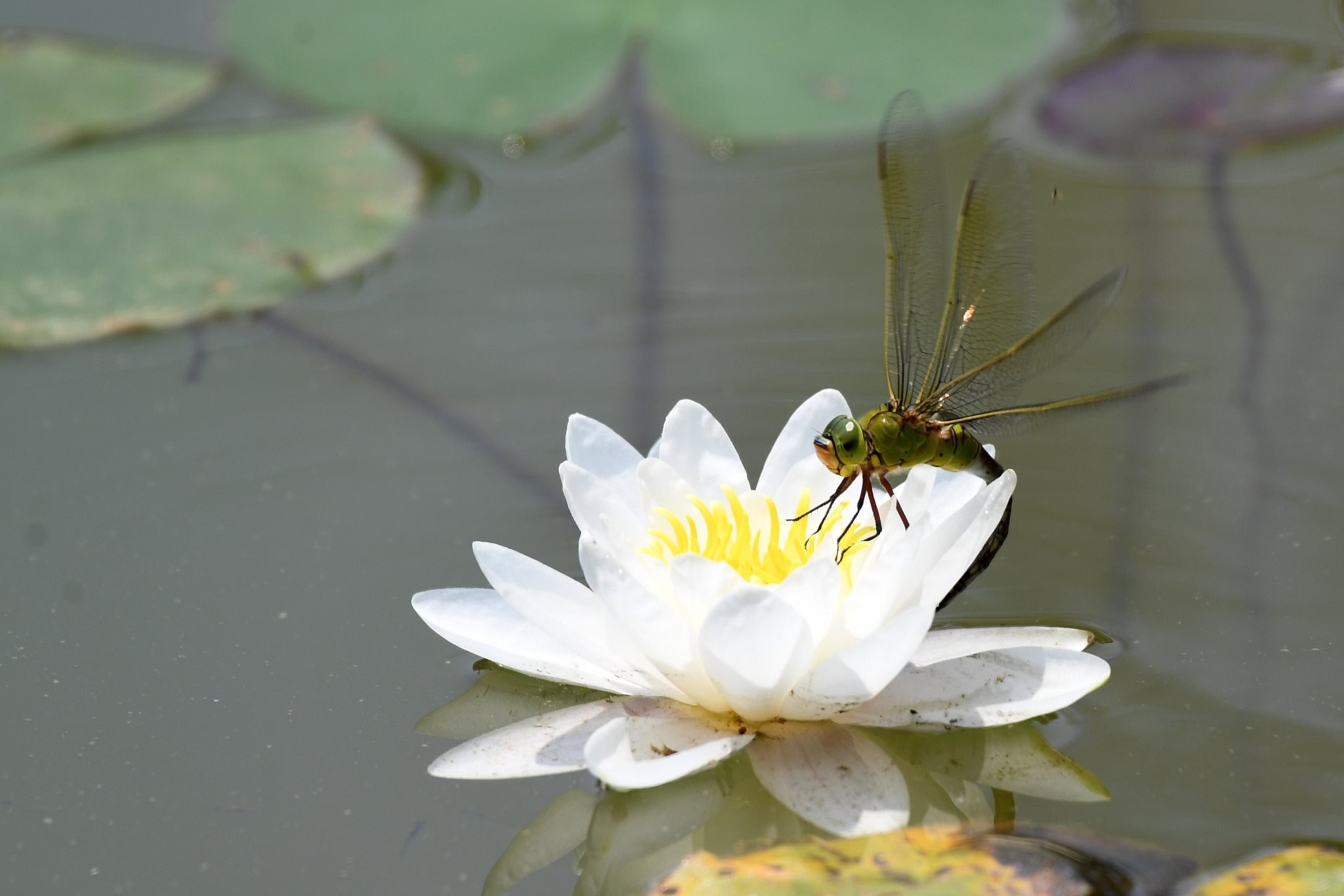 2023年5月26日,貴州仁懷,楠竹林公園的睡蓮綻放,蜻蜓花間歇息,成為一道夏日美景。視覺中國(guó)