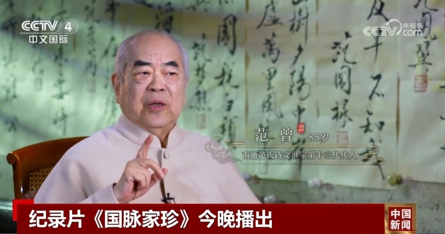 紀(jì)錄片《國脈家珍》從南通范氏詩文世家第十三代傳人范曾的視角,還原家族成員個性鮮明、造詣深厚的傳奇故事。他們或居于廟堂,持守高風(fēng)峻節(jié),或隱于江湖,揮灑豪詩雄文,呈現(xiàn)“國運與家事榮辱相伴,時局與詩筆悲喜相連”的人物命運。該片結(jié)合歷代傳人的詩文,反映中國傳統(tǒng)文化綿延不息,展現(xiàn)范氏家族家風(fēng)家教的細(xì)節(jié),探尋其延續(xù)的密碼。
