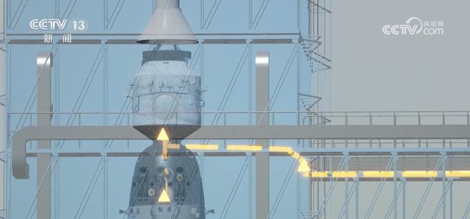 總臺央視記者 勞春燕:這個發(fā)射塔架就好像是一個100多米高的“鋼鐵巨人”。它有一個學名叫“臍帶塔”,為什么叫這個名字?因為塔架里有各種線纜和管路,就像嬰兒的臍帶一樣,可以為火箭和飛船輸送能量與養(yǎng)分。另外,塔架還裝了空調(diào)和保溫層,可以為船箭創(chuàng)造一個合適的環(huán)境。有了它的全方位保護,火箭適應(yīng)環(huán)境的能力大大提高,即使碰上零下20℃的極寒天氣依然可以正常發(fā)射。