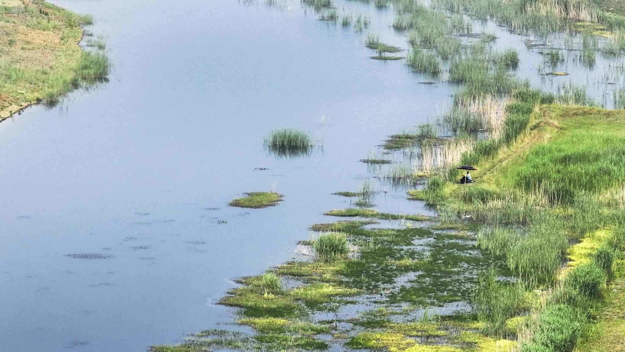 山東棗莊:濕地公園綠意盎然 水鳥(niǎo)翩躚而至