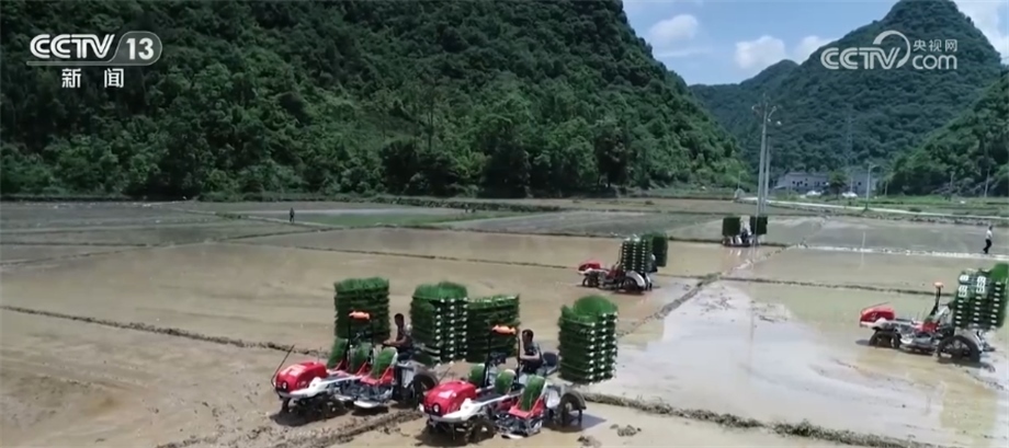 我們再到貴州省黔南州長順縣付家院村去看看。稻田里,多臺插秧機(jī)在農(nóng)機(jī)手的操作下,將一株株秧苗從苗盤整齊地栽種入田。今年,長順縣計劃種植水稻12萬畝,目前超過6成的水田完成了插秧,預(yù)計6月中旬能全部結(jié)束。
