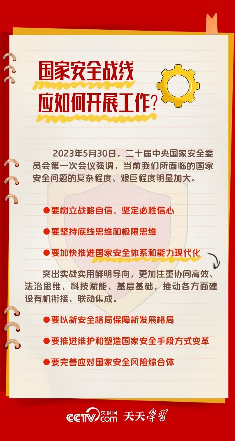5月30日,習(xí)近平總書記主持召開二十屆中央國家安全委員會第一次會議時強(qiáng)調(diào),要全面貫徹黨的二十大精神,深刻認(rèn)識國家安全面臨的復(fù)雜嚴(yán)峻形勢,正確把握重大國家安全問題,加快推進(jìn)國家安全體系和能力現(xiàn)代化,以新安全格局保障新發(fā)展格局,努力開創(chuàng)國家安全工作新局面。