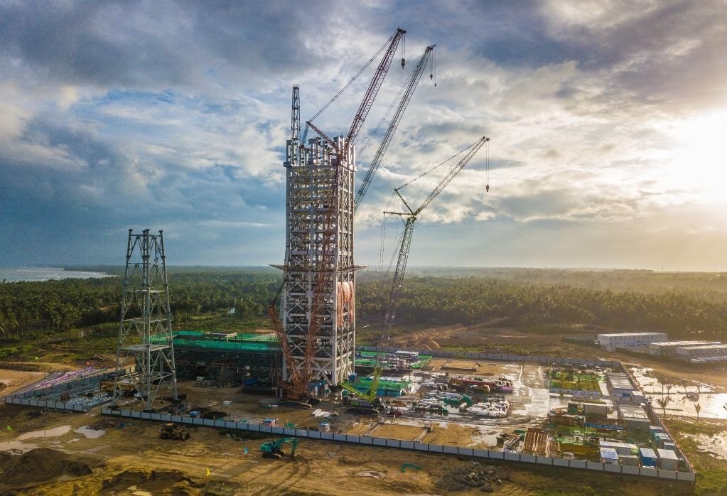 圖為建設(shè)中的海南商業(yè)航天發(fā)射場(chǎng)1號(hào)工位(無(wú)人機(jī)照片,5月12日攝)。 新華社記者蒲曉旭 攝