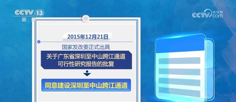 2015年12月21日,國家發(fā)展改革委正式出具關(guān)于廣東省深圳至中山跨江通道可行性研究報告的批復(fù),同意建設(shè)深圳至中山跨江通道。