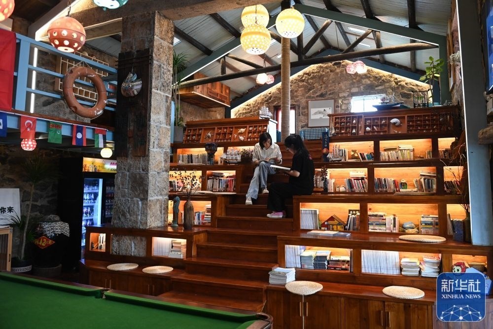 游客在浙江溫嶺市石塘鎮(zhèn)海利村一家民宿內(nèi)閱讀書籍(6月7日攝)。近年來,海利村依托濱海風(fēng)光,整合石屋資源,大力發(fā)展生態(tài)旅游,已成為石塘鎮(zhèn)民宿最集中的區(qū)域,被譽(yù)為“中國最美漁村”。新華社記者 黃宗治 攝