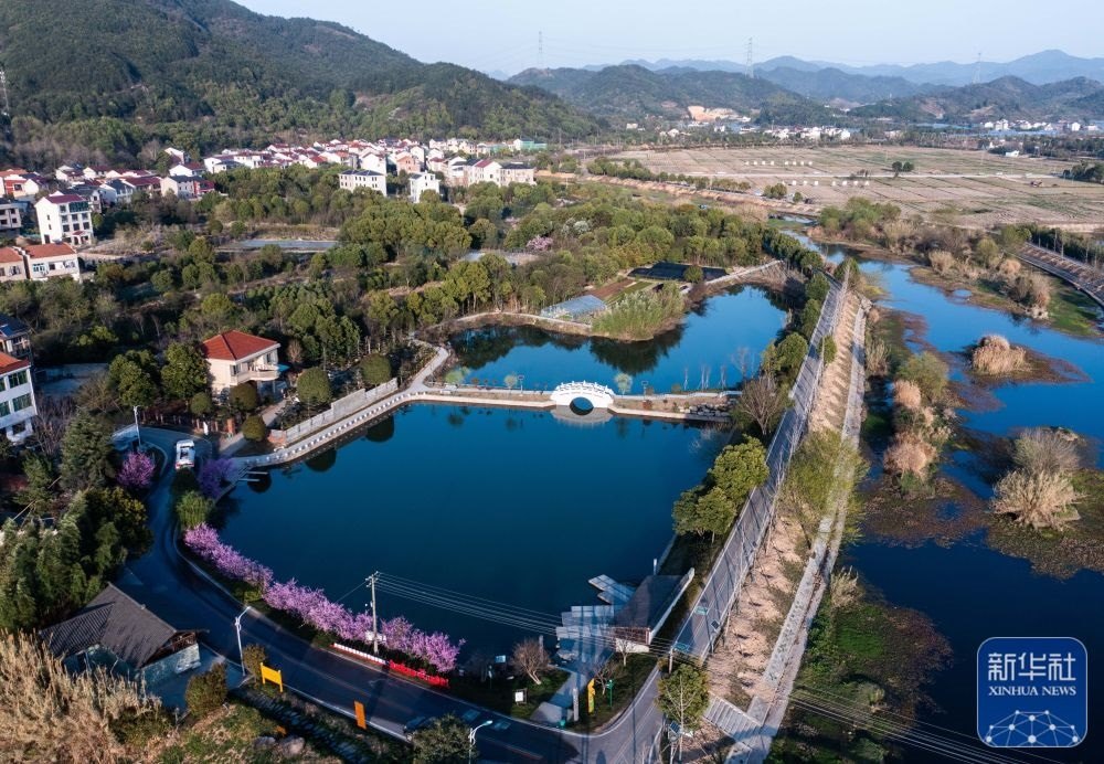 空中俯瞰浙江金華市金東區(qū)嶺下鎮(zhèn)八仙溪及周邊村莊(3月14日攝,無人機(jī)照片)。近年來,嶺下鎮(zhèn)通過“抓源頭、強(qiáng)整治、做項(xiàng)目、重長效”的治理思路,先后關(guān)停八仙溪沿岸多家制砂企業(yè)及養(yǎng)殖場,清理河道垃圾,完成28個村農(nóng)村生活污水處理工程和51口池塘清淤,2018年以來八仙溪水質(zhì)常年保持在Ⅱ類以上。新華社記者 徐昱 攝